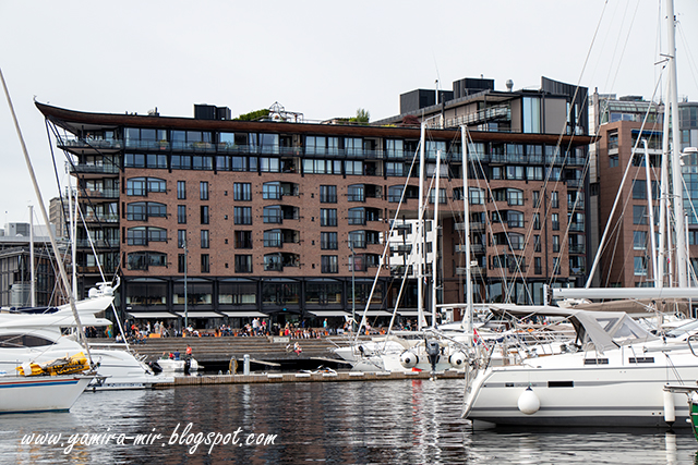 Как обычно летом, мы направлялись на Aker Brygge. Но в этот раз проложили свой маршрут не по центральной улице города, а мимо здания Оперы, так сказать, в обход. Ведь если речь идет о крышах Осло, то разве можно обойтись без крыши Оперы? Второй такой в мире уж точно нет нигде :)