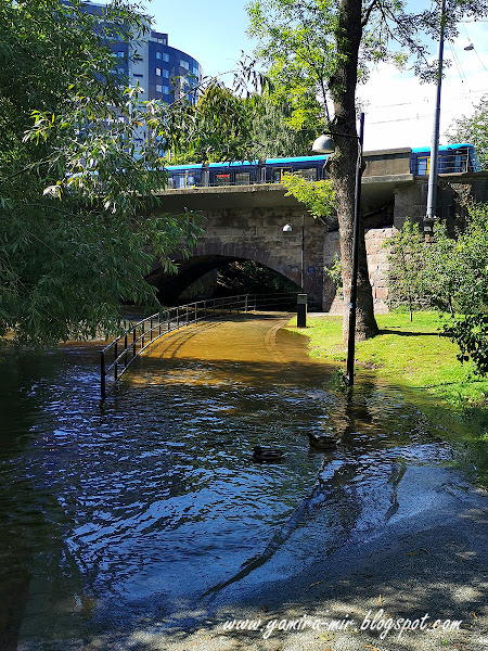 Осло в этом смысле повезло: у нас шторм проявился как двухдневный дождь, причём не особо сильный. Но этого хватило, чтобы Akerselva не только преисполнилась водой, но местами даже вышла из берегов 🙃